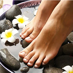 Get a warm softening foot soak with foot and leg exfoliation and massage.